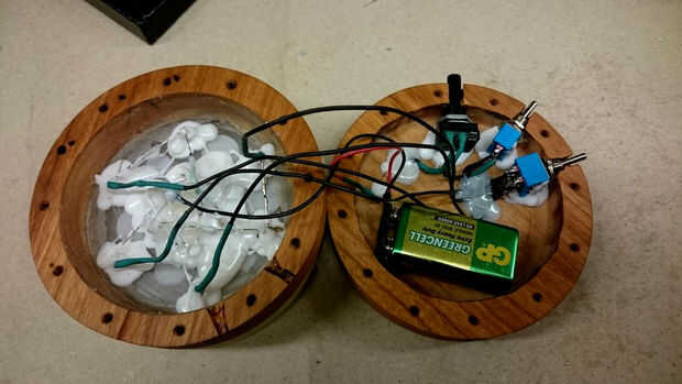Si funciona es tiempo para trabajar en los interruptores. He tratado de ocultarlos lo más posible porque se ven poco voluminoso. He hecho pequeñas aberturas para ambos de los interruptores, así como el potenciómetro. Usé el taladro pequeño y dremel para eso.