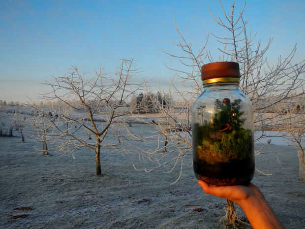 Tuve un gran accidente cuando yo estaba transportando el terrario. La tapa no fue sujetada firmemente y la jarra de vino suelta. El terrario cayó sobre un suelo de piedra y se rompió en mil pedazos! Afortunadamente las plantas lograron sobrevivir (incluso la seta) y sólo tuve que comprar un frasco nuevo.