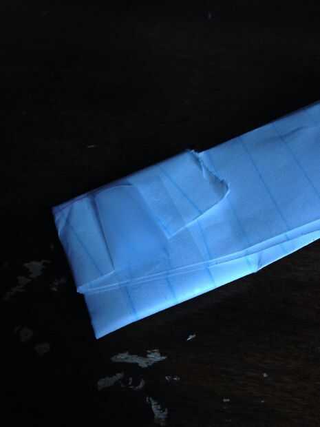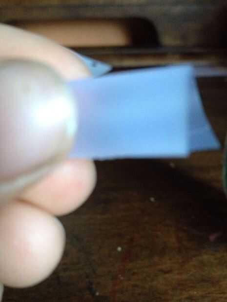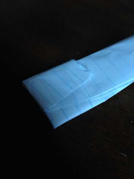 Doble la aleta derecha hacia abajo sobre la pieza enrollada de cinta