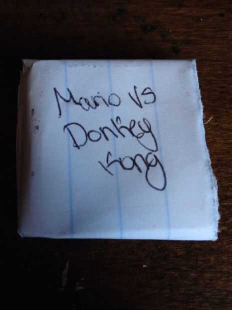 Ahora Dale la vuelta y coge el lápiz y el juego de la etiqueta Para ex: usé burro de Mario vs caos de tierra mini kong así que agarre mi pluma y etiqueta