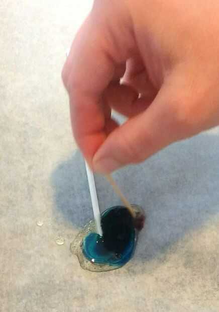 4. para hacer una galaxia o nebulosa, remolino el colorante alrededor con un palillo de dientes a su efecto deseado.