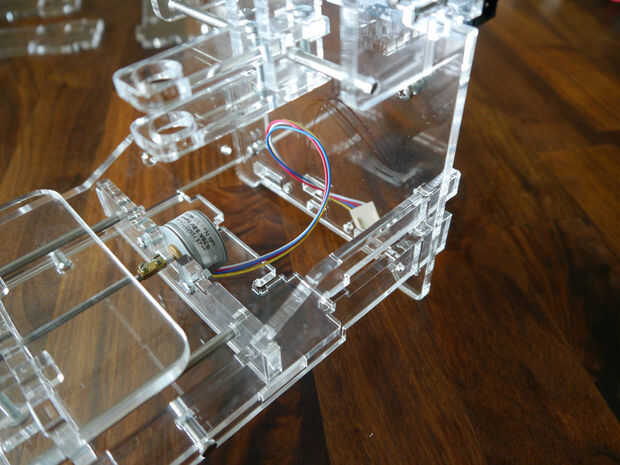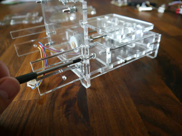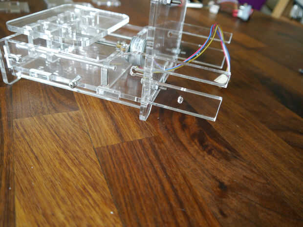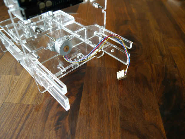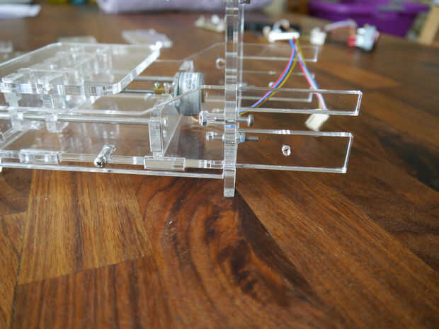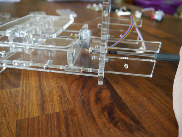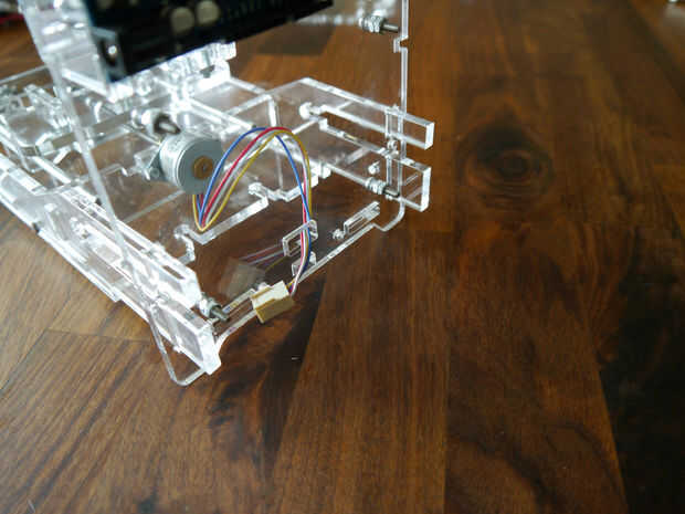 IST der Arduino befestigt kann die de hombre Rückenplatte auf die Verlängerung der Seitenteile stecken. Dabei besonders vorsichtig vorgehen und möglichst gerade aufstecken. Die Platte verkantet hier sehr gerne, niemals Gewalt anwenden, etwas wackeln hilft hier wieder.