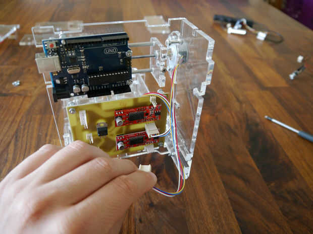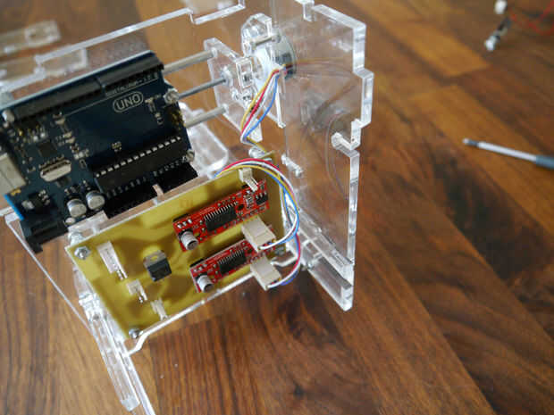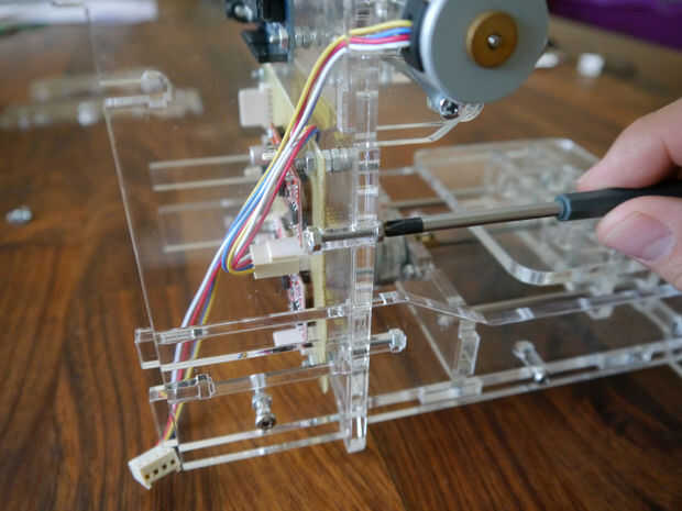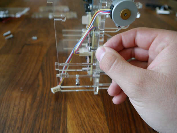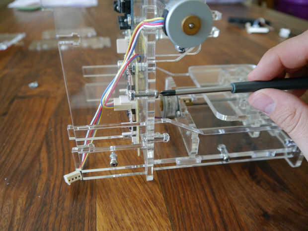 Schraube das Seitenteil conjunto un verbinde und die Achse X mit dem unteren Steckverbinder