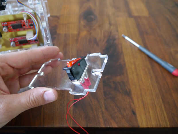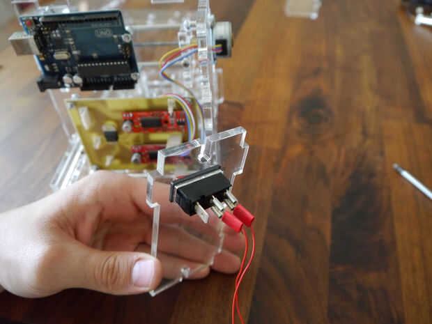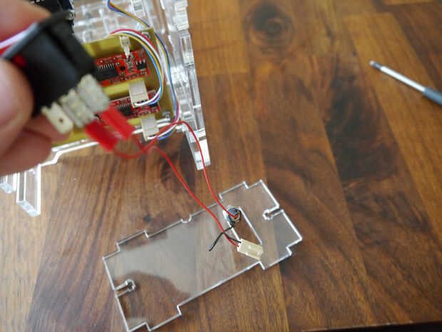Den Drückt Ein-/ Ausschalter en die vorgesehene Aussparung, dazu braucht RSI etwas mehr Kraft. Keine Angst, solange du gleichmäßig drückst sollte nichts passieren.