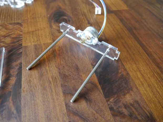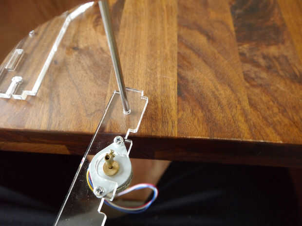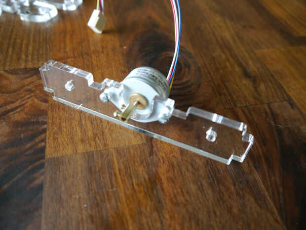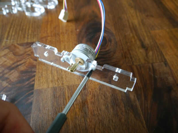 NIMM einen der beiden Schrittmotoren und schraube NHI wie auf den Bildern una den Motorträger.