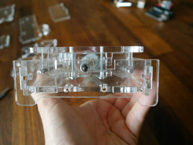 IST alles dort wo es hingehört, drück mueren den mit de frente Nuten en die Zapfen.