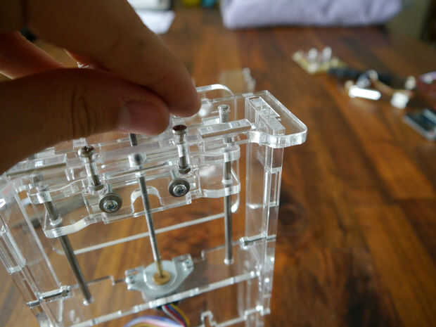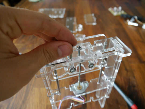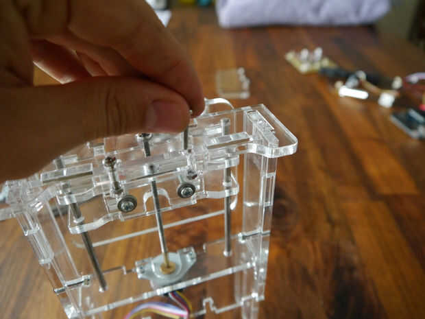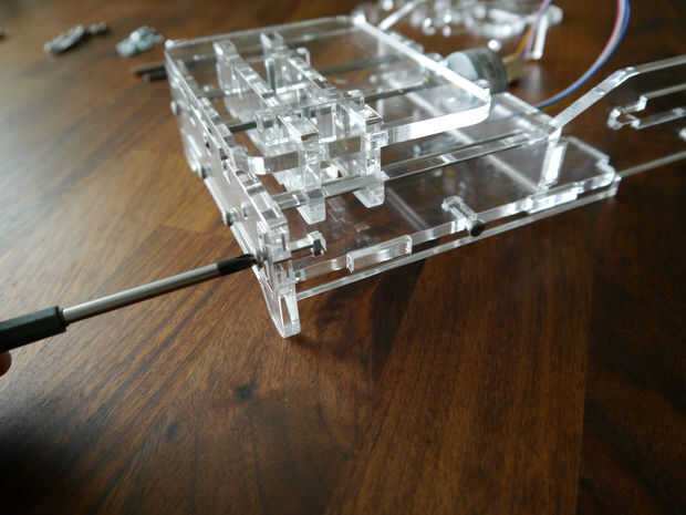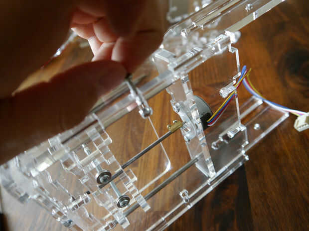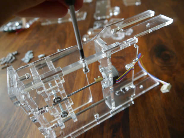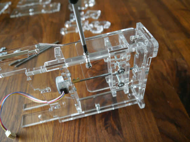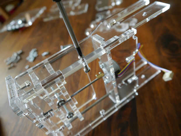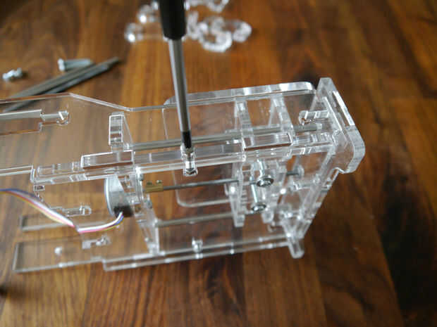 En den gezeigten Bildern wird alles verschraubt. Este sistema wird bei der ganzen Maschine verwendet. MIT ein bisschen Übung klappt das immer besser.