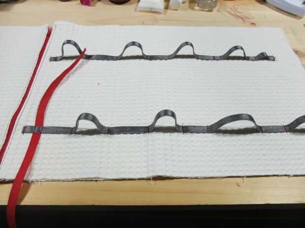 Si es aceptable, puede coser el elástico en lugar de los pernos.