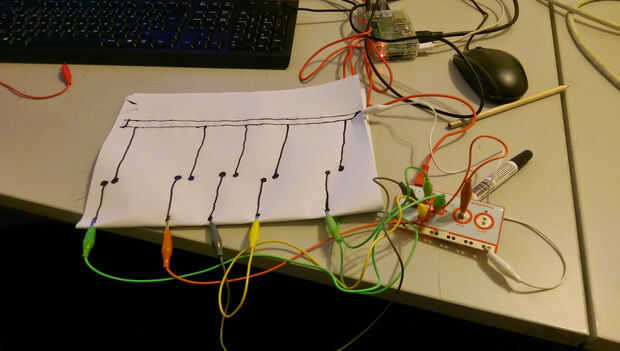 Una vez seco, cualquier momento que tocas la dibujada "clave" para que el dedo cubre las dos líneas, el programa de cero hará que el Pi reproducir un sonido. Usted puede, como hizo, programar cada tecla que cambiando de tema.