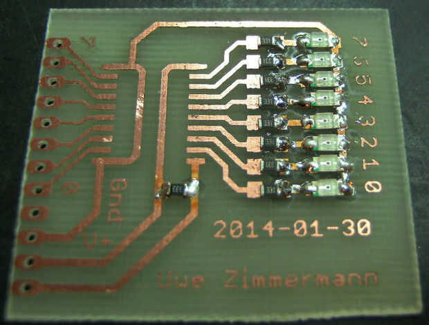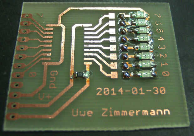Después de todos los LEDs en su lugar hizo lo mismo para las ocho resistencias de 330Ω y la resistencia de 33kΩ.