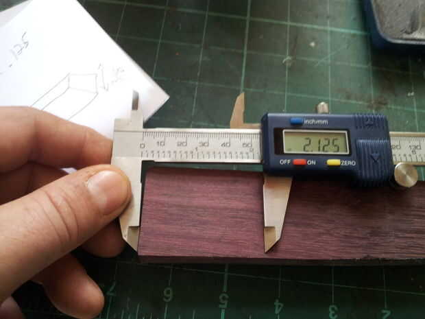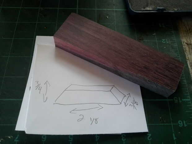 Utilizado un trozo de corazón púrpura para la base, pero como he dicho, se puede utilizar cualquier madera dura que tienes disponible. Sin embargo, no, recomiendo usar maderas más suaves como pino o cedro ya que mi primer intento de crear una cejilla de cedro (significado para que coincida con mi guitarra de cedro) fallado bastante miserablemente.
