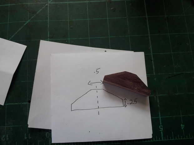 Decidí dejarlo. 5" para la clave y los lados hasta.25 la forma cónica. Ahora, fácilmente puede parar ahí y mantener su cejilla simple, sin embargo, es en este punto que usted puede estilizar un poco. Utilizar una lima redonda para crear hendiduras a ambos lados de donde iría la clave, entonces archivado canales hacia abajo los bordes como guías de la cadena (que descubrí más adelante realmente no era necesarias, pero agregan a la mirada de todos modos).