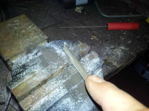 El agujero que perforó en base era.375, así que creado el peg lija redondo hasta.380 con grano 150, y luego cambiar a 220 y reducir lentamente hasta que tuviera un ajuste ceñido. Les recomiendo tomarse su tiempo con esto o podría llegar a tener que hacerte una nueva clave.