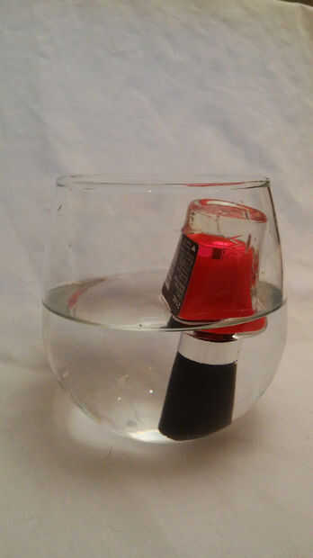 Poner boca abajo la botella de esmalte de uñas en el agua durante 2 minutos