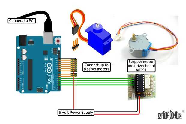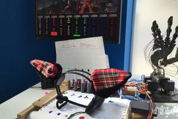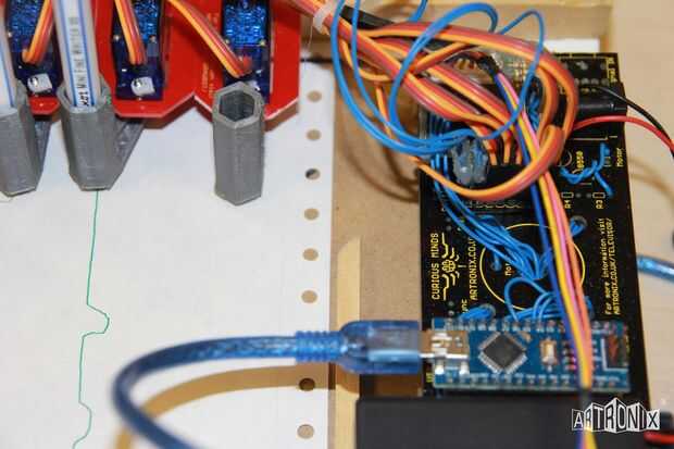 Una vez que haya uno de han funcionando usted puede Agregar un Arduino y conseguir sus ondas cerebrales para funcionar algunas máquinas. Este sketch de Arduino se moverá hasta 8 servomotores basados en su actividad cerebral (y funcionar un motor paso a paso si quieres construir algo parecido a nuestra pluma de EEG trazado máquina).