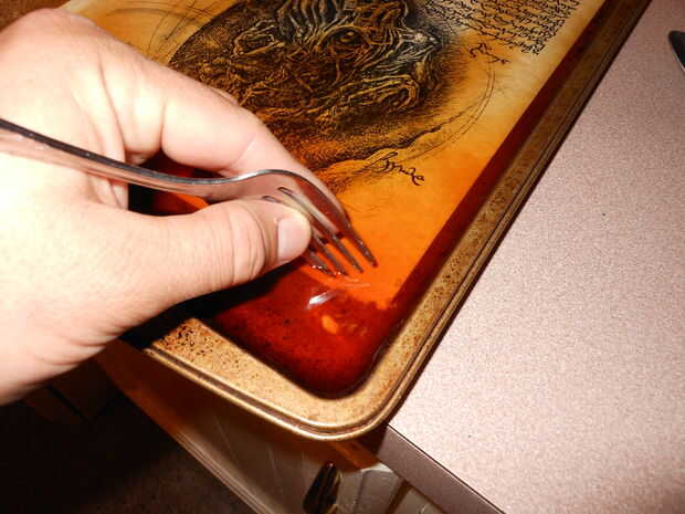 Una vez que cada página ha sido rascada y dañada, tiéndalo a secar, si todavía tiene agua en ella, no absorberá el té así.