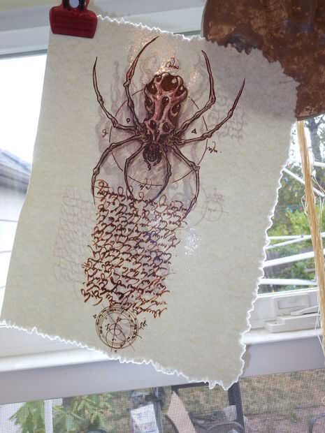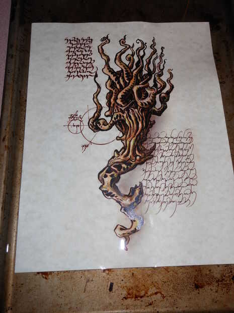 Un punto de trama principal en la película y el juego es que varias páginas se han quitado del Necronomicón y deben ser recuperados más tarde. Este es un buen momento para eliminar las páginas. Quería que se vea como habían aflojado o ha arrancado, por lo que tres de las páginas dobla y luego se rasgó ellos cerca del borde de la columna vertebral. Guardé los bordes así que más adelante podría enlazarlo en el libro.