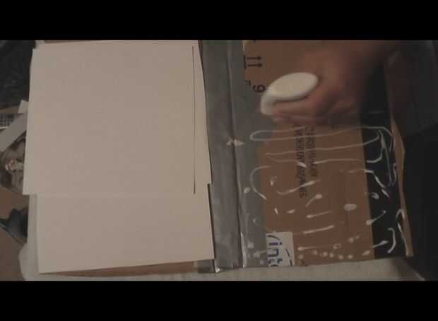 Cubre próximo comienzo en el interior. Necesitará pegamento o cemento de goma. Puede utilizar papel blanco, pero utilicé cartulina cuz es más robusto. Cortar para adaptarse a cada lado, y luego pegarlos en su lugar. Deje seco por unas horas.