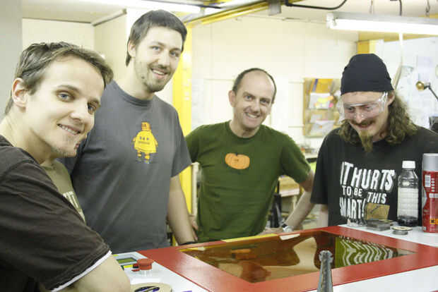 Lo sentimos, no hay ninguna imagen de todas las herramientas en un solo lugar, que el arenador de la tira, cortador del laser y todos los bits en un solo lugar sería imposible! En cambio, aquí está una foto de PKM, bokehs, Kiteman y Lemonie llena todo nuestro cortador del laser.