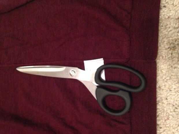 Descubrí que los dos paneles de delante de mi chaqueta eran casi el mismo ancho que el suéter de P.Nut que hace recortando mis dos piezas una tarea fácil. Usé un par de tijeras de coser afilada para separar los paneles frontales de la parte posteriora de la Jersey a lo largo de sus costuras.