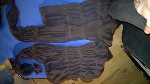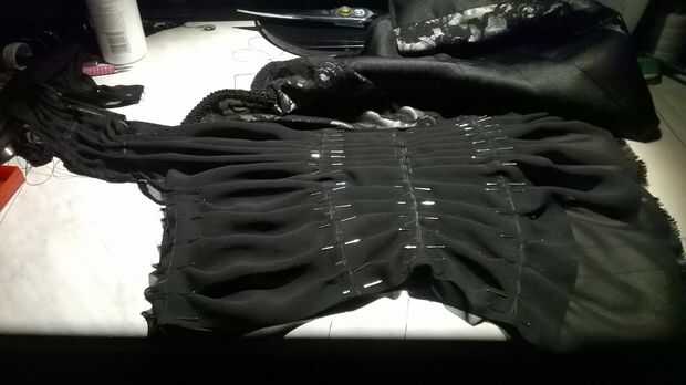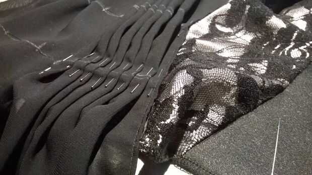 Usted tiene su abundancia deseada de la anchura de la tela, para que pueda empezar a dividirlo y pin, en todas las líneas. Hacía de igualmente, y más frecuente en la frente – debido a la caída - y menos aparente en la parte posterior. Pero es usted, dónde se siente la necesidad de algunos extras de la colmena. Una vez terminado fijando, sacar los pasadores de seguridad y dejar sólo aquellos que están sólo en el gasa. ¿Te los pones sólo hay derecho? Utilizando la máquina de coser, coser todo y sacar los pasadores. Coser a la línea superior. Sólo hasta la parte del busto. No coser la parte en la parte superior. Por esa parte, de la mano cosida en un cordón cosita.