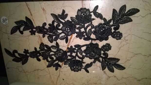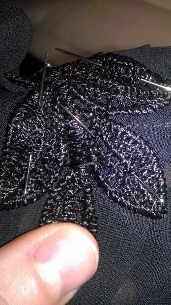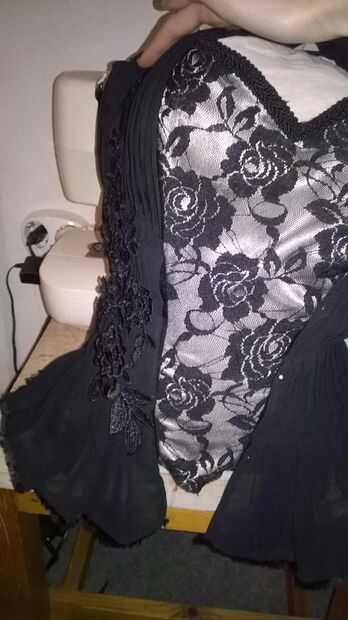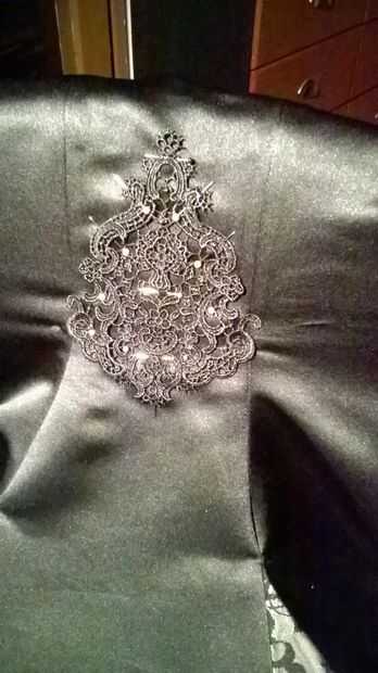 Volver colocar los pasadores de seguridad, para que verifique la conexión y empezar a prender, en gasa, una vez más, los apliques de encaje de su elección. Los pernos más, el mejor resultado, no ahorrar tiempo en esto. Que cosa, con la mano. Otra vez usé el hilo recubierto, ya que parecía más como material del cordón, sino que depende de su aplicación. Hacen ambos lados, simétricas, o no, dependiendo de su decisión y el encaje. Cuando se encuentran en, usted finalmente puede coser en el gasa en la parte superior, coser a lo largo de todo en la parte posterior y sólo en las líneas horizontales en la frente, con unas puntadas. Nada en la parte inferior.