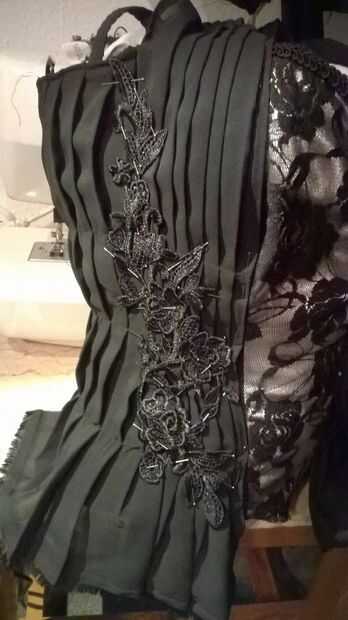 Usé los granos, para colgar de la parte superior y de la falda también. Como quiero para este vestido en algún momento, no cose cualquiera de ellos en el vestido, es todo acoplable. Para mayor comodidad, utilice un hilo de goma en los granos de la falda, por lo que se puede caminar más libremente, pero si utilizas los granos pesados, no usar goma. Te aflojan pronto. Simplemente puede poner grano tras grano o utilizar el estilo clásico collar de perlas anudado, como lo hice. Os adjunto el encaje con anillos de metal negro y cierres de langosta. (para la foto, porque no tengo el rings(?) puente adecuado en el momento)