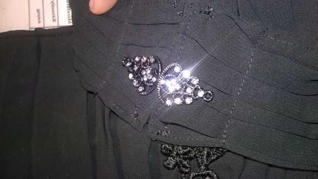 Pruébate el vestido y el lugar donde debe cumplir su neckpart del perno. Cortar la parte sobrante, roll up, coser y mano cosida su broche de lujo. Y si es necesario las hebillas francesas, ocultar.