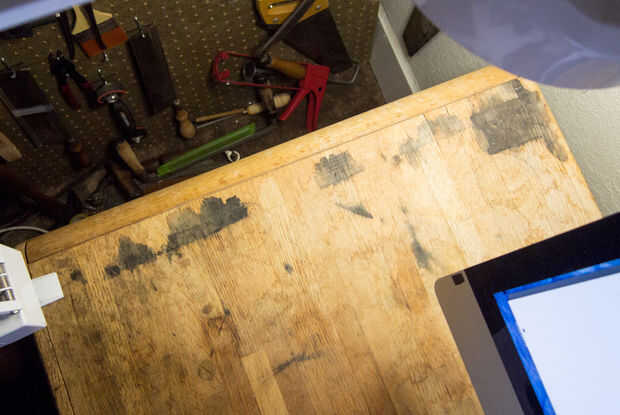 Si la madera tiene un acabado de poliuretano o de otro revestimiento superficial y ve una mancha, se mancha por debajo y esa capa hay que eliminar primero.