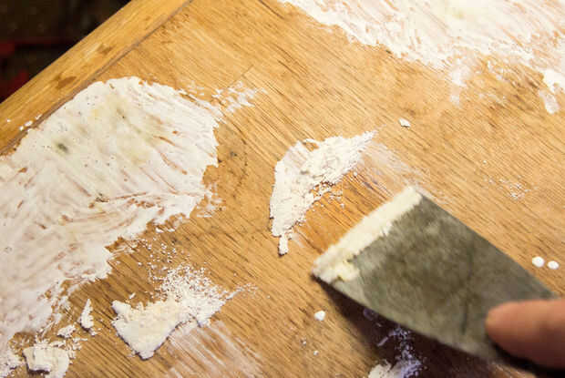 lijar muebles de madera con la Dremel Multi-Max™ y la #MM11 almohadilla de lijar y la lija madera surtido #MM70W (grano 60/120/240).