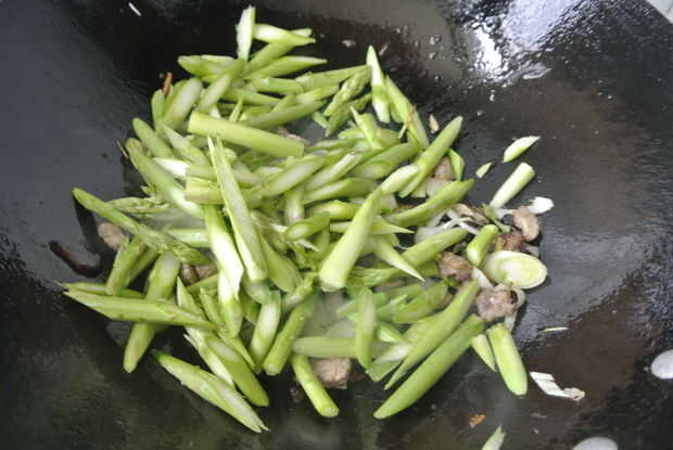 Negro ajo salteado de espárragos (3 / 4 paso)