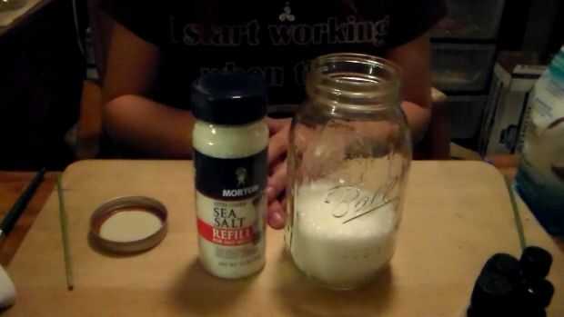 Llenan de tarro de sal marina hasta 1/2 lleno.