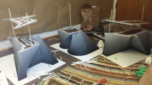 Cada capa de aglomerado fue numerado con el fin de asegurar que cada forma única fue pintado con la mezcla correcta de pintura negro con respecto a su posición de capa. Como se mencionó anteriormente, sólo pinté las partes de la escultura que sería visible. Después de que seque la pintura, empecé a apilar uno encima del otro. Para asegurarse de que cada capa de forma se alinearon en el lugar correcto, pila utilizando una clavija de 1/4" como guía (he añadido que dos espigas corte ubicaciones para cada CNC corte archivos).