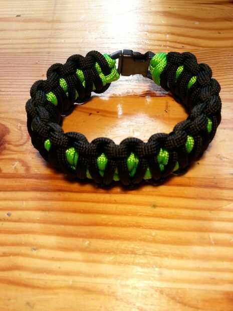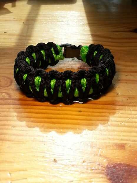 ¡ Felicidades! Han creado la Cobra sobre brazalete de paracord de espina de pescado, pero entre tu y yo, permite llamarlo el tejido Black Mamba. No olvides votar por mí en el gran concurso al aire libre.
