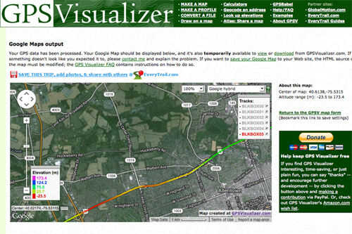 Ahora dirígete a la GPS VIsualizer para ver los resultados en el mapa