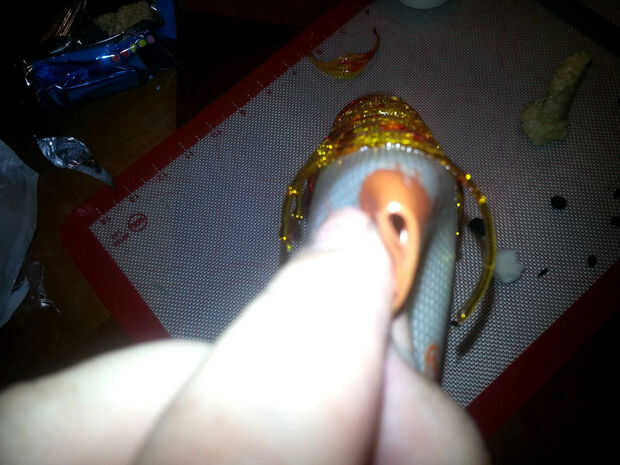 Colocar una alfombrilla de silicona grande y luego la cinta otra alfombra alrededor de un perno de balanceo. Coloque el rodillo envuelto en la estera de la silicona con la costura hacia abajo.