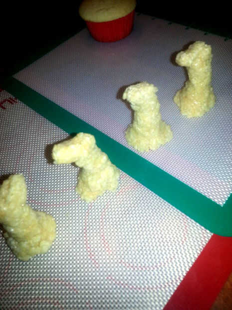 Su excedente toda pieza será aproximadamente de 3" de altura tan objetivo para 2 1/2" arroz crujientes torres para iniciar la construcción de su dragón.