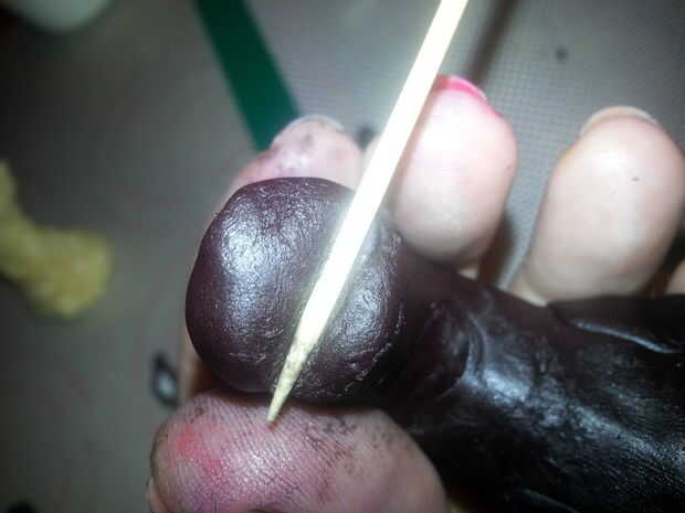 Empezar por tomar un taco de su negra masa y amasar hasta que sea viable. Alisarlo mejor posible a un círculo que sea aproximadamente 4" de diámetro. Que envuelva alrededor del cuello y hasta en la cabeza.