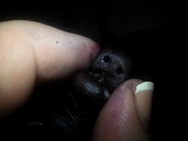 Tiempo para jugar al dentista. Haga dos agujeros en la parte inferior de la boca de dragón.