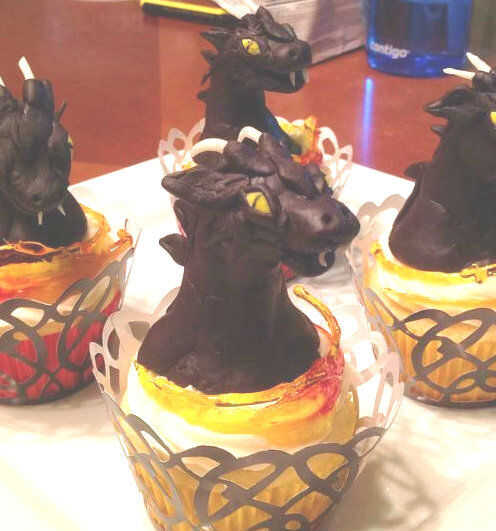 Coloque su anillo de la llama de caramelos en el borde de la Magdalena y el set dragon en el centro.