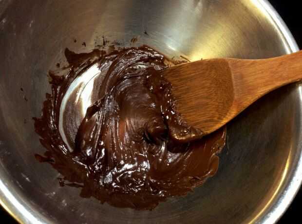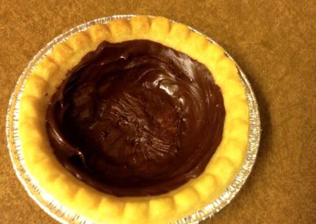 OK en este paso que necesitarás tus tartas que ya han sido horneados. Entonces necesita 1/3 taza de chocolate y una cucharadita de mantequilla. Coloque estos artículos en una taza de metal encima de una olla hirvienda de agua para derretir. Por favor no se recaliente en caso contrario se convierte en grueso e imposible de usar. Después de que el chocolate se derrite use un cepillo para cada una de las tartas de la línea y reservar en la nevera.