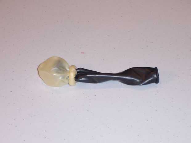 Doblar el globo negro de una manera que le permite insertar parcialmente en el globo claro que has retiró del puntero.