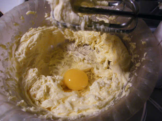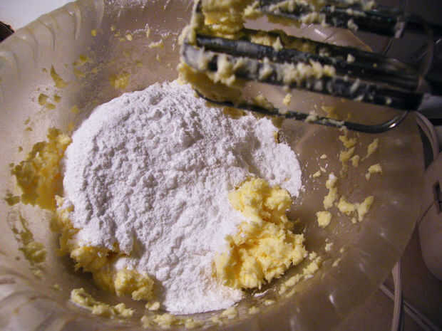Venció en glaseado de azúcar con los huevos, uno a la vez