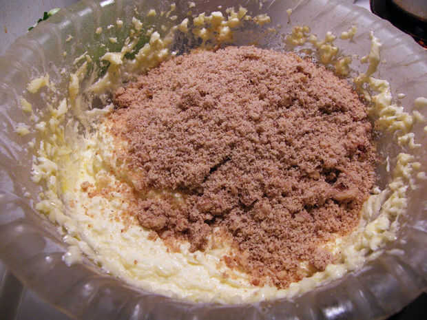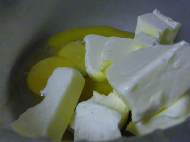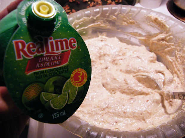 Doblar las claras de huevo a la mezcla de yema de huevo luego añadir en nogal plus cal jugo