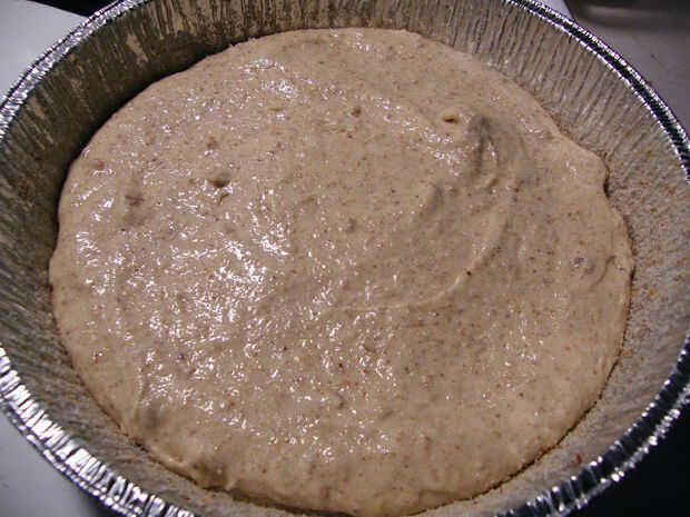 Vierta la mezcla mitad en tartera enmantecada y enharinada