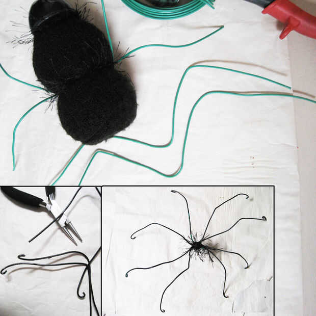 Usé alambre de jardín para mis piernas, pero perchas de alambre probablemente trabajaría bien. Si no tienes redonda nariz alicates puede utilizar alicates regulares y hacer ángulos rectos en lugar de curvas para pies - o pueden simplemente dejar liso. Longitudes más cortas de hilo son fáciles de trabajar con, atar a otra pieza en el extremo que se está ejecutando salir **