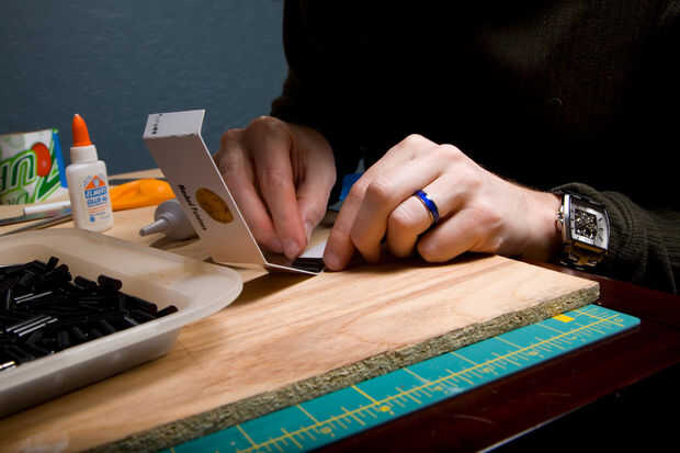 Ahora para la diversión parte. Agarra la silicona y empezar a exprimir. Para un 3/4" grid aplique una gota 3/8" desde el lado que desea que la parte delantera, y para 2" red pone dos granos de 1/2" y 1 1/2" de la parte delantera. Lamentablemente no tengo ninguna imagen que me muestra que un cordón de silicona en una cuadrícula 285HV, así que he tenido que sustituir algunas tomas de la construcción de una red para el 580EX II. Tanto para la continuidad!