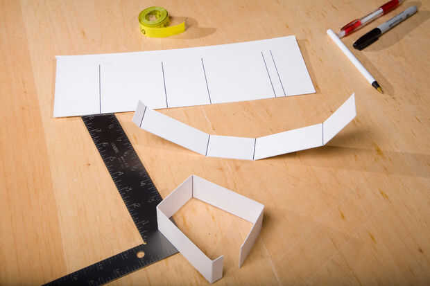 Cortar la tira a lo largo de los lados sin cortar con un cuchillo de la caja, luego doblar cuidadosamente la caja en forma, con las líneas anotadas para ayudar a empezar la curva correcta. No use una regla, use los dedos! Es más fácil mantener el codo derecho y en su lugar.