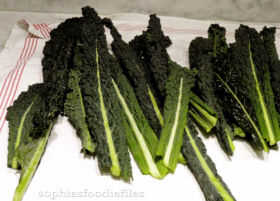 250 gr negro col rizada hojas bien lavadas, hilado seco, grandes tallos quitados, col rizada hojas rasgada para arriba