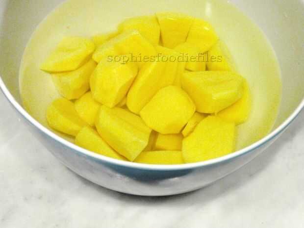 700 gr pelado patatas harinosa, cada corte para arriba en 4 (ponderado al pelado)